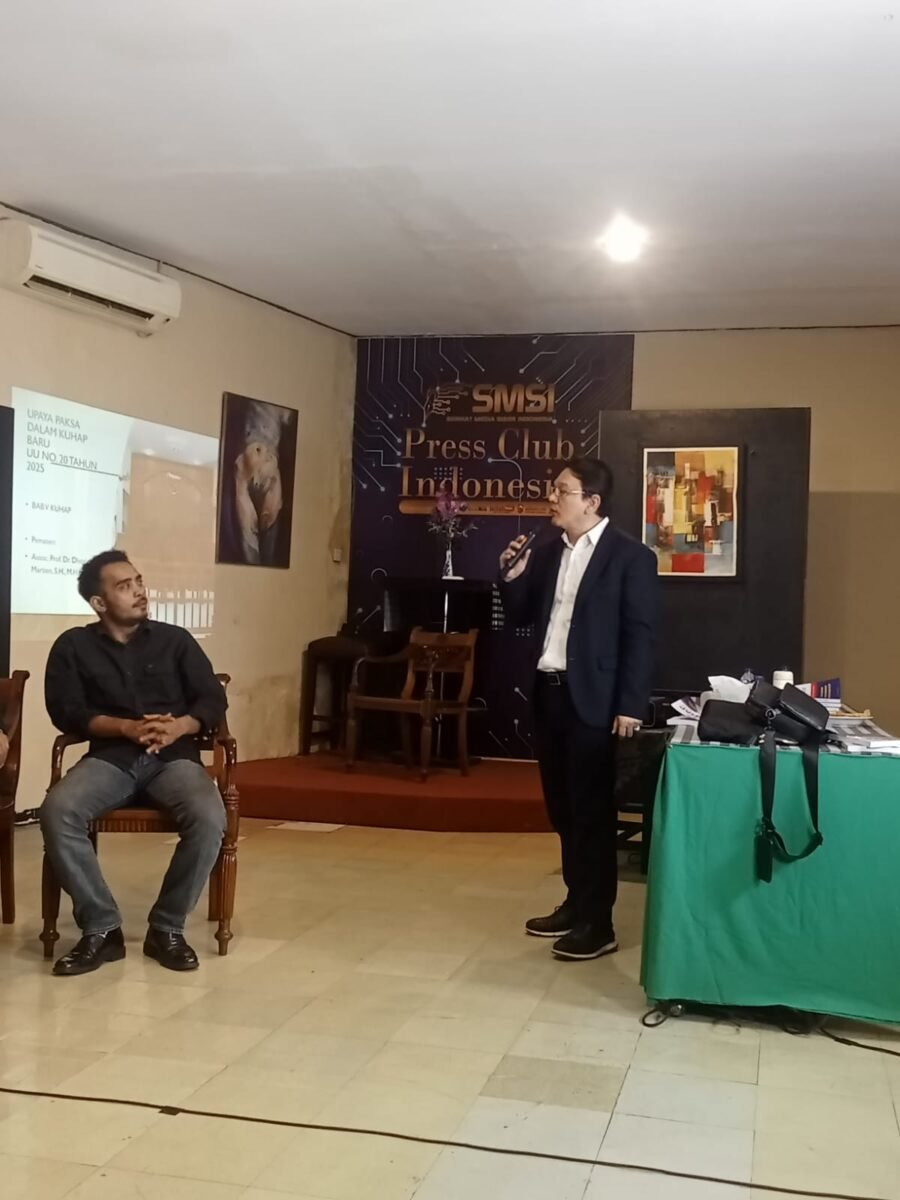 JOGJAOKE.COM, JAKARTA — Kitab Undang-Undang Hukum Acara Pidana (KUHAP) yang baru disyahkan 2 Januari 2026 dibedah dalam Focus Group Discussion (FGD) di Press Club Serikat Media Siber Indonesia (SMSI) Jalan Veteran II, Gambir, Jakarta Pusat, Selasa (10/2/2026).