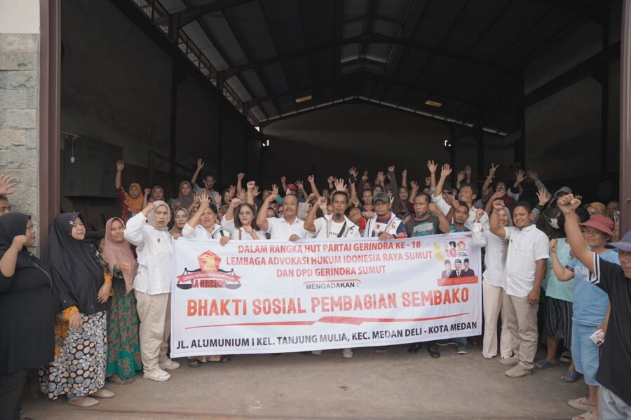 JOGJAOKE.COM, MEDAN – Dalam rangka memperingati Hari Ulang Tahun (HUT) Partai Gerindra, sayap partai melalui Lembaga Advokasi Hukum Indonesia Raya (LA Gerindra) Sumatera Utara menggelar kegiatan bakti sosial dengan menyalurkan bantuan sembako kepada warga di Jalan Aluminium, Kelurahan Tanjung Mulia, Kota Medan, Senin (2/2/2026).