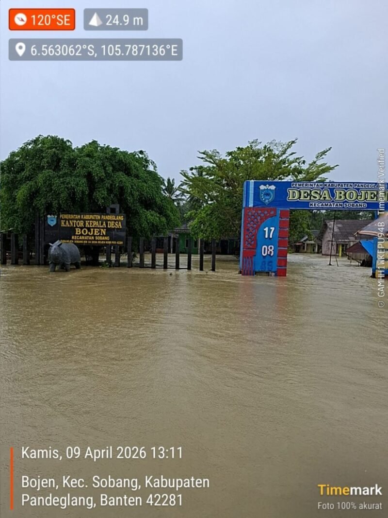 JOGJAOKE.COM, Pandeglang — 550 hektar lahan persawahan di dua Desa. Terendam banjir. Yaitu desa Teluklada, dan Desa Bojen diKecamatan Sobang, Kabupaten Pandeglang pada kamis (9/04/2026).