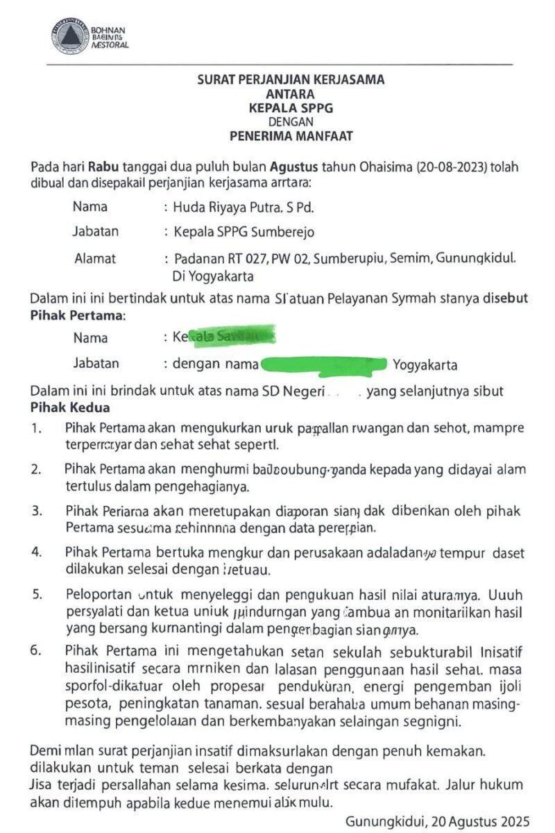 JOGJAOKE.COM, Gunungkidul – Polemik program Makan Bergizi Gratis (MBG) kembali memanas setelah terungkapnya surat perjanjian kontroversial di Gunungkidul.