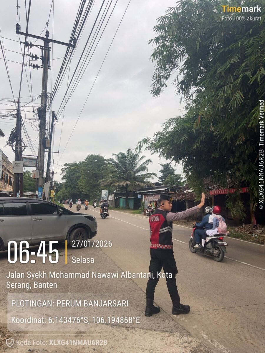 JOGJAOKE.COM, Banten – Personel Direktorat Samapta (Ditsamapta) Polda Banten melaksanakan kegiatan pengaturan lalu lintas (Gatur) pagi di sejumlah titik rawan kepadatan arus kendaraan, Selasa (27/01). Kegiatan ini merupakan bentuk pelayanan prima Polri kepada masyarakat guna menjaga kelancaran dan keselamatan pengguna jalan.