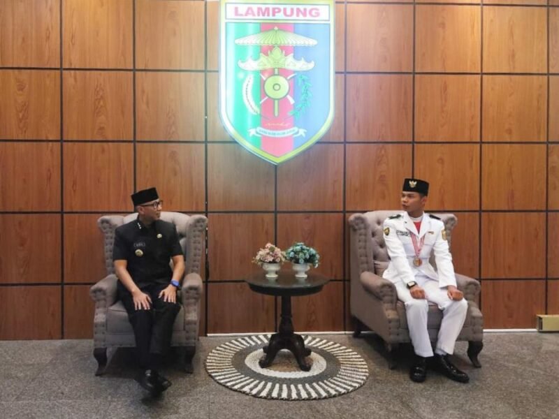 JOGJAOKE.COM, Bandar Lampung — Gubernur Lampung Rahmat Mirzani Djausal menyampaikan selamat dan ucapan terima kasih kepada dua anggota Pasukan Pengibar Bendera Pusaka (Paskibraka) Nasional asal Lampung yang telah membawa nama baik sekaligus membanggakan Provinsi Lampung di tingkat nasional.