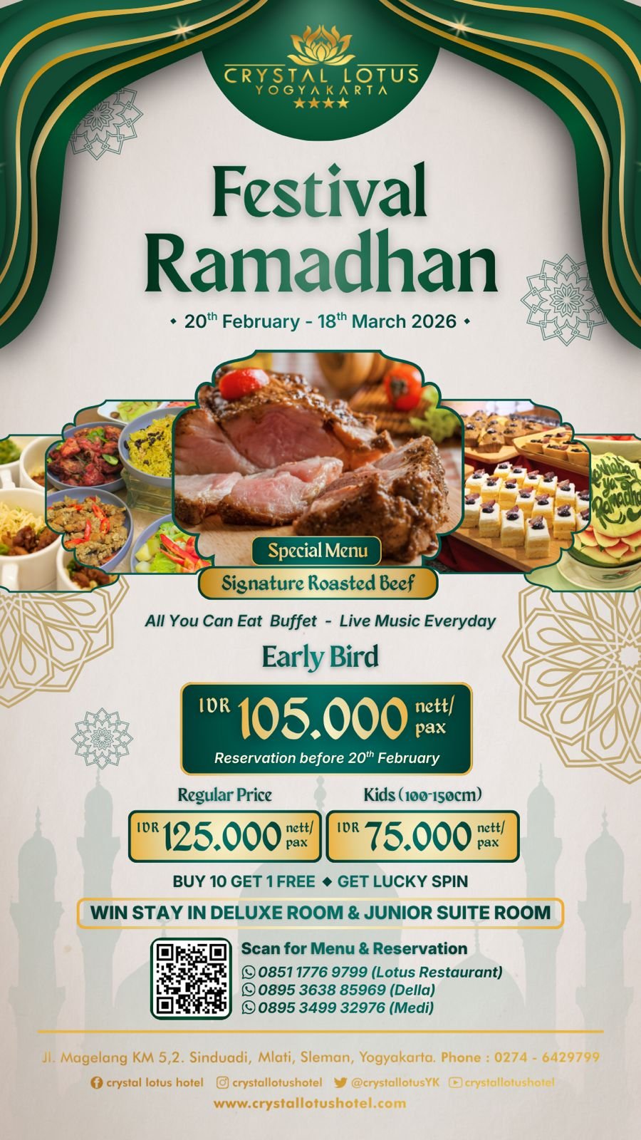 Melalui Festival Ramadhan 2026, Crystal Lotus Hotel Yogyakarta berharap dapat menjadi pilihan masyarakat untuk menikmati momen berbuka puasa dengan suasana yang hangat, nyaman, dan penuh kebersamaan selama bulan suci Ramadhan. (Aga)