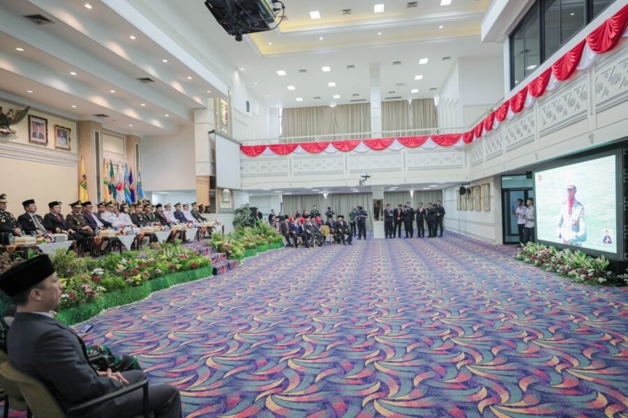 JOGJAOKE.COM, Bandar Lampung – Gubernur Lampung Rahmat Mirzani Djausal, Wakil Gubernur Lampung Jihan Nurlela, serta anggota Forum Komunikasi Pimpinan Daerah (Forkopimda) mengikuti jalannya Upacara Detik-Detik Proklamasi HUT RI ke-80 Kemerdekaan secara virtual di Balai Keratun Lt. 3, Kompleks Kantor Gubernur Lampung, Bandarlampung, Minggu (17/8/2025).