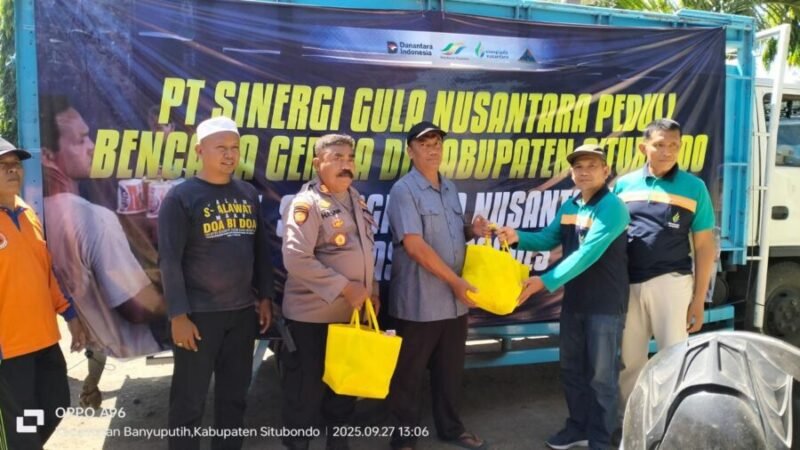 JOGJAOKE.COM, Situbondo, 27 September 2025 – Sebagai bentuk kepedulian sosial terhadap masyarakat terdampak bencana, PT Sinergi Gula Nusantara (SGN), Subholding Komoditas Gula dari Holding Perkebunan Nusantara (PTPN III Persero), menyalurkan bantuan sosial bagi warga korban gempa bumi di Kecamatan Banyuputih, Kabupaten Situbondo.
