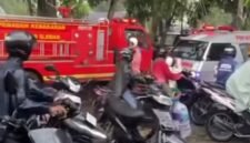 Insiden ini sontak mengundang perhatian warga sekitar dan pengguna jalan yang melintas.