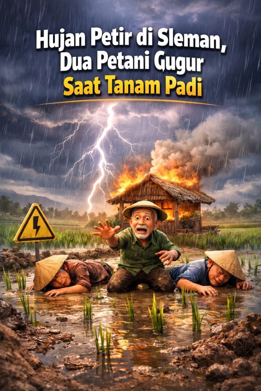 JOGJAOKE.COM, Sleman – Hujan deras disertai kilat mendadak berubah menjadi petaka di persawahan Dusun Barak, Margoluwih, Seyegan, Sleman. Dua petani lanjut usia meninggal dunia setelah tersambar petir, Senin (9/2/2026) siang. Peristiwa ini kembali menegaskan rapuhnya keselamatan pekerja sektor pertanian di ruang terbuka.