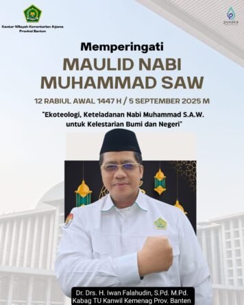 JOGJAOKE.COM, Serang – Dr. Drs. H. Iwan Falahudin, S.Pd. M.Pd. Kepala Bagian Tata Usaha Kantor Wilayah Kementerian Agama / Kabag TU Kanwil Kemenag Provinsi Banten, bersama para pegawai lainnya se-Indonesia mengikuti acara peringatan maulid Nabi Muhammad Saw secara online yang diadakan Kementerian Agama Republik Indonesia di Masjid Istiqlal Jakarta.