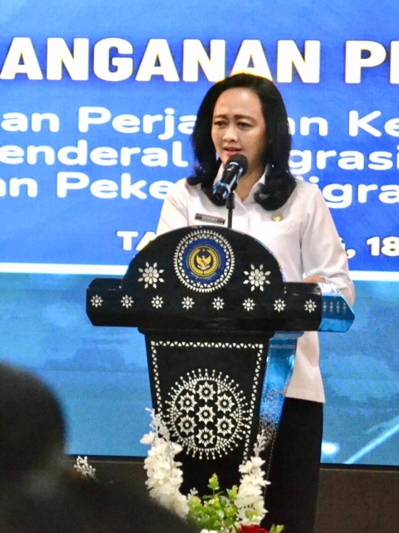 Dalam sambutannya, Ibu Felucia Sengky Ratna menekankan, “Kolaborasi dengan BP3MI Banten ini merupakan langkah strategis dan konkret. Dengan menyatukan sumber daya dan jaringan Desa Binaan kami, kami dapat membangun benteng pertahanan yang lebih kuat di tingkat komunitas. Imigrasi memiliki kewenangan di pintu keluar masuk negara, sementara BP3MI memiliki jangkauan hingga ke calon Pekerja Migran Indonesia (PMI) dan keluarganya. Sinergi ini akan memutus mata rantai TPPO dan TPPM dari hulu.”