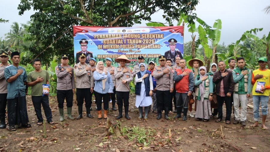 JOGJAOKE.COM, Pandeglang – Dalam rangka mendukung program ketahanan pangan nasional, Polres Pandeglang melaksanakan kegiatan penanaman jagung secara serentak Kuartal I Tahun 2026 yang digelar di wilayah Kecamatan Kalanganyar, Kabupaten Pandeglang, pada Sabtu (7/3/2026).