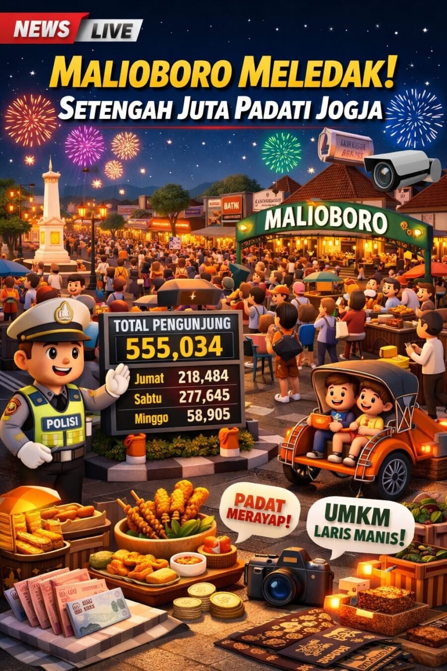 Berdasarkan data people counting Ditlantas Polda DIY, jumlah pengunjung telah menembus lebih dari setengah juta orang.
