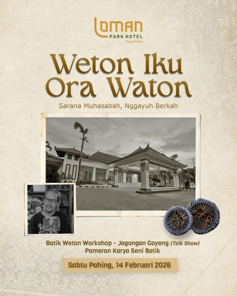 JOGJAOKE.COM, YOGYAKARTA — Weton tidak sekadar dimaknai sebagai hitungan hari lahir dalam tradisi Jawa, tetapi juga mengandung filosofi, karakter, dan nilai kehidupan yang mendalam. Pemahaman tersebut diangkat dalam sebuah pameran dan rangkaian kegiatan seni budaya bertajuk Batik Weton yang akan digelar di Loman Park Hotel Yogyakarta pada 14–21 Februari 2026.