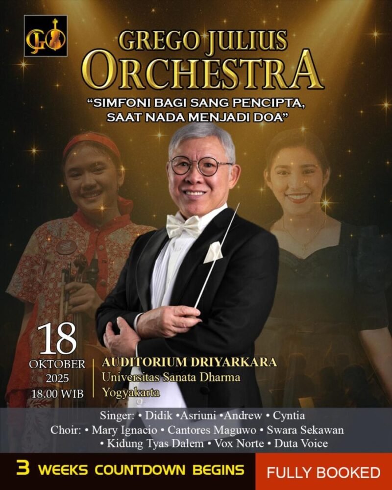 ‎Semangat inilah yang dihadirkan dalam konser rohani bertajuk “Simfoni Bagi Sang Pencipta, Saat Nada Menjadi Doa”, yang akan digelar Sabtu, 18 Oktober 2025, pukul 18.00 WIB di Auditorium Driyarkara, Universitas Sanata Dharma Yogyakarta.