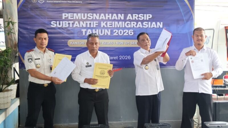 JOGJAOKE.COM, Serang – Rabu (04/03/2026), Kepala Kantor Imigrasi Kelas I Non TPI Serang, I Gusti Agung Komang Artawan, didampingi oleh Jajaran Pejabat Struktural dan Pegawai Kantor Imigrasi Kelas I Non TPI Serang, melaksanakan giat Pemusnahan Arsip Fisik Substantif Keimigrasian Kantor Imigrasi Kelas I Non TPI Serang.