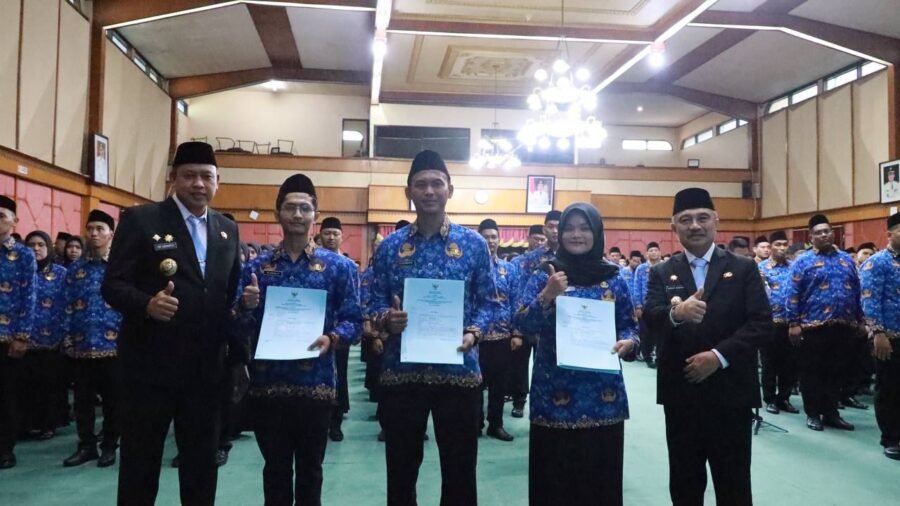 JOGJAOKE.COM, Kota Bekasi, Rabu 1 Oktober 2025 — Wali Kota Bekasi, Tri Adhianto, memimpin prosesi Pengambilan Sumpah dan Penyerahan Petikan SK bagi 385 Pegawai Pemerintah dengan Perjanjian Kerja (PPPK) Tahap II Tahun Anggaran 2024, sekaligus menyerahkan SK kepada PNS baru, termasuk lulusan IPDN Angkatan XXXI, di lingkungan Pemerintah Kota Bekasi. Acara yang berlangsung khidmat ini digelar di Balai Patriot.