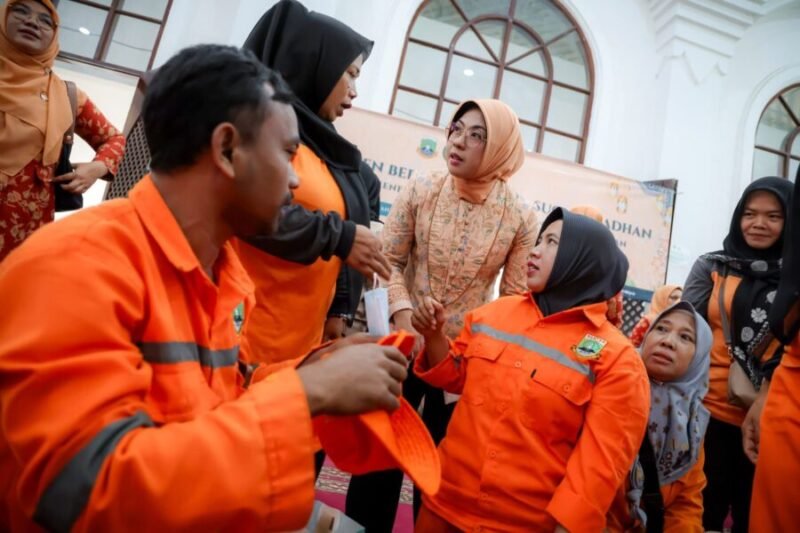JOGJAOKE.COM, Banten – Penasehat Dharma Wanita Persatuan (DWP) Provinsi Banten, Tinawati Andra Soni mengucapkan terimakasih dan apresiasi atas kerja keras petugas kebersihan di lingkungan Kawasan Pusat Pemerintahan Provinsi Banten (KP3B). Sebagai bentuk kepedulian, Dharma Wanita memberikan paket sembako untuk meringankannya sedikit beban dan membantu kebutuhan harian.