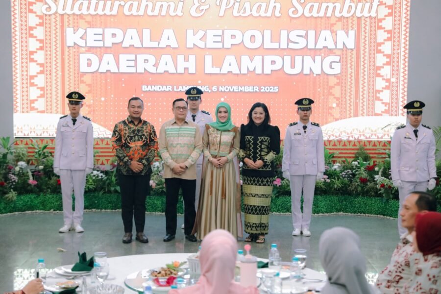 JOGJAOKE.COM, Bandar Lampung — Suasana hangat terasa saat Gubernur Rahmat Mirzani Djausal bersama Wakil Gubernur Jihan Nurlela menghadiri acara Silaturahmi dan Pisah Sambut Kepala Kepolisian Daerah (Kapolda) Lampung di Mahan Agung, Kamis (6/11/2025) malam.
