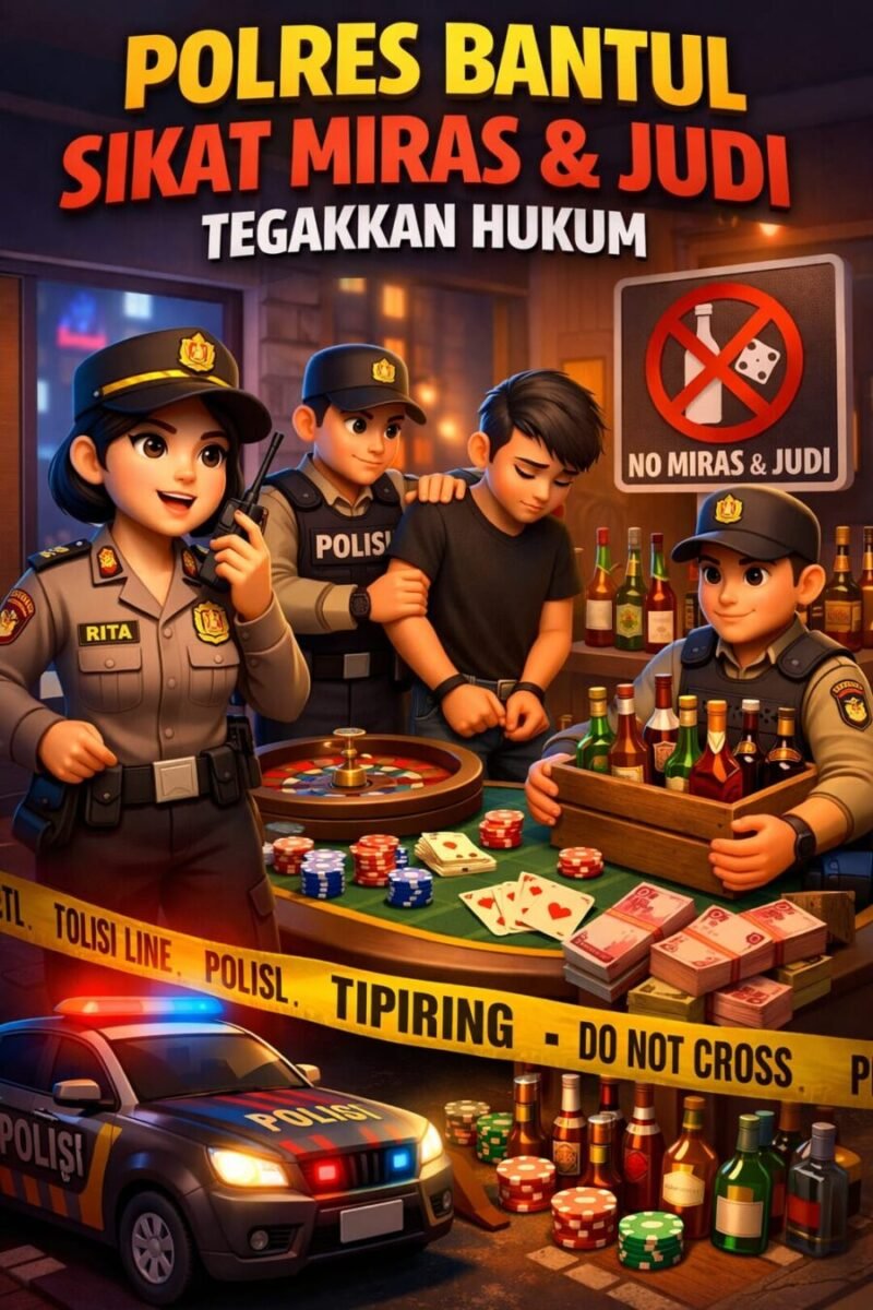JOGJAOKE.COM, Bantul – Anggota Polres Bantul menggencarkan Kegiatan Rutin Yang Ditingkatkan dengan menindak tegas penjual miras dan praktik perjudian, Jumat (20/2/2026) malam.