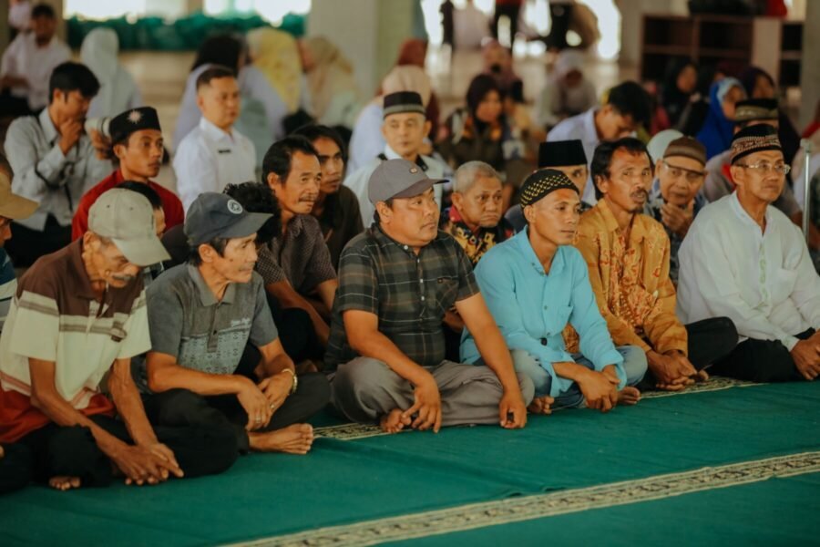 Di lokasi ke dua, Batin Wulan beserta rombongan kembali membagikan 100 paket sembako di Masjid Jami’ Al-A’mal Tiyuh Kagungan Ratu, Kecamatan Tulang Bawang Udik untuk warga yang lanjut usia, dan keluarga yang terdata memiliki anak yang beresiko stunting.