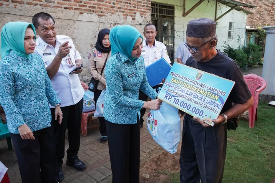 JOGJAOKE.COM, Bandar Lampung – Pemerintah Provinsi Lampung melalui Dinas Sosial menyerahkan bantuan dana santunan kematian kepada keluarga korban bencana di Jalan AMD Tumenggung, Gang turunan RT 04 LK 2 Kelurahan Gunung Sulah, Kecamatan Way Halim, Rabu (24/09/2025).