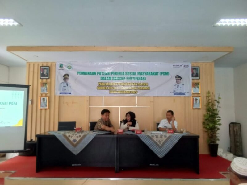 JOGJAOKE.COM, Pandeglang – Dinas Sosial Provinsi Banten menggelar pembinaan dan sertifikasi bagi Pekerja Sosial Masyarakat (PSM) sebagai upaya meningkatkan kapasitas, kompetensi, serta sinergi para pekerja sosial dalam menangani berbagai persoalan sosial di tingkat kecamatan, kelurahan hingga desa.