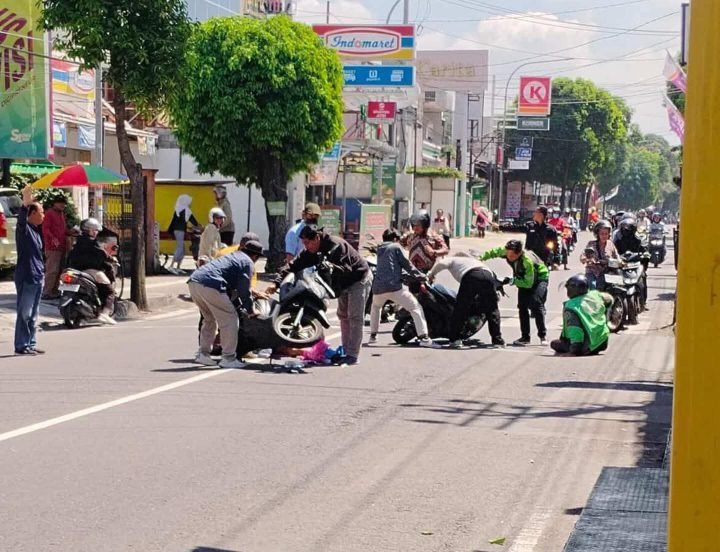 Siswa SMA Tergeletak Tak Sadar Usai Tabrak Ojol Tamansiswa