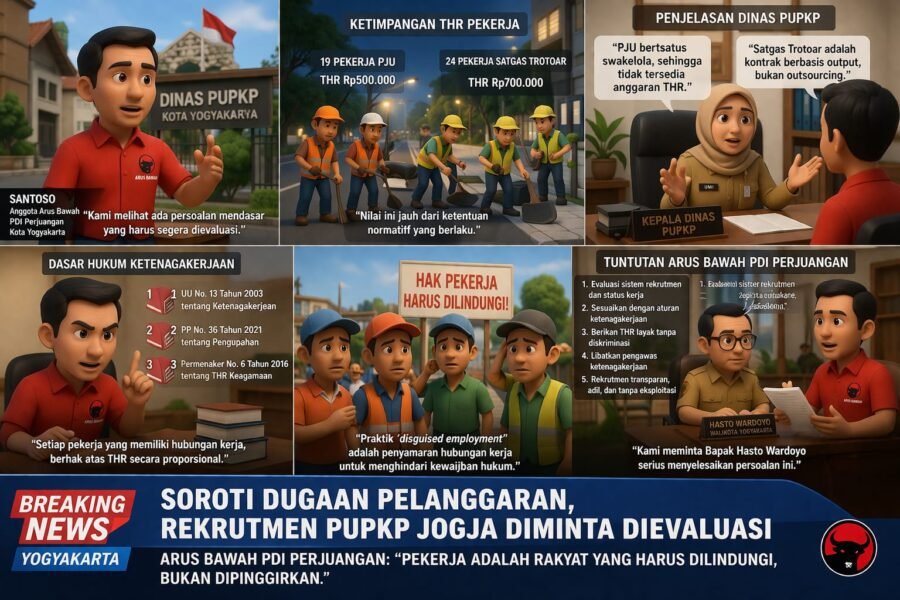 JOGJAOKE.COM, Jogja – Anggota Arus Bawah PDI Perjuangan Kota Yogyakarta, Santoso, menyampaikan keprihatinan serius terkait sistem rekrutmen dan status hubungan kerja tenaga lapangan di Dinas PUPKP Kota Yogyakarta.