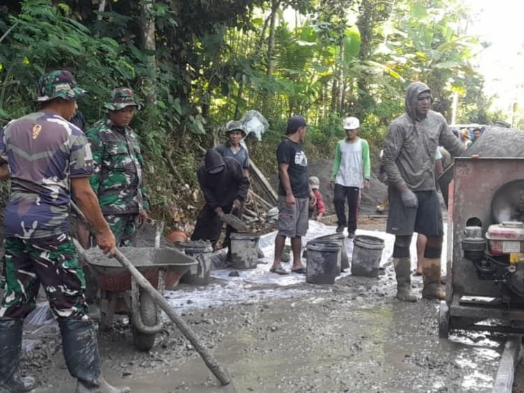Sasaran fisik utama TMMD kali ini berupa betonisasi jalan usaha tani sepanjang 736 meter di Dusun Marong, Desa Grugu.