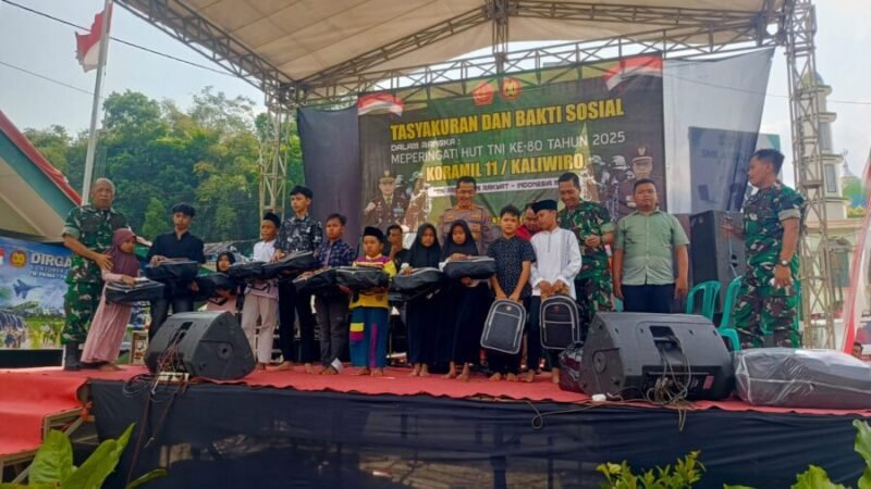 JOGJAOKE.COM, Wonosobo – Dalam rangka memperingati HUT TNI ke-80, Koramil 11/Kaliwiro Kodim 0707/Wonosobo menggelar tasyakuran dan santunan anak yatim serta duafa dengan penuh khidmat, Senin (6/10/2025).