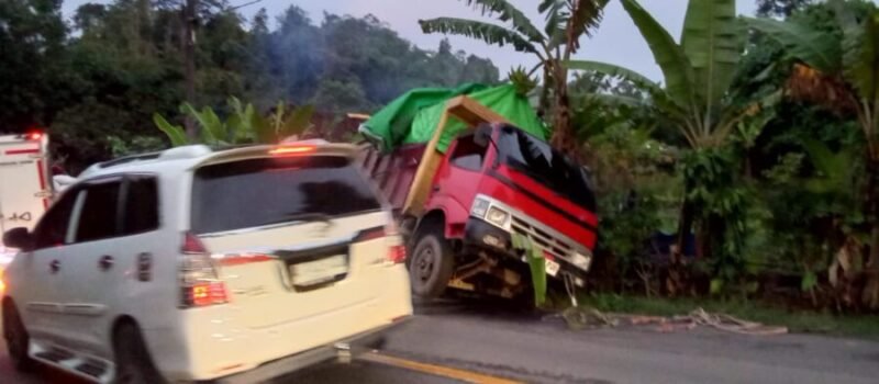 “Sampai di tanjakan Jalan lintas AMD truk tidak kuat menanjak, telat over perseneleng hingga selip dan mobil akhirnya tergelincir karena berat mengakibatkan mundur akhirnya kami banting stir kekiri pak..!,”kata Irpan supir truk kepada wartawan, Selasa (10/02/2026).