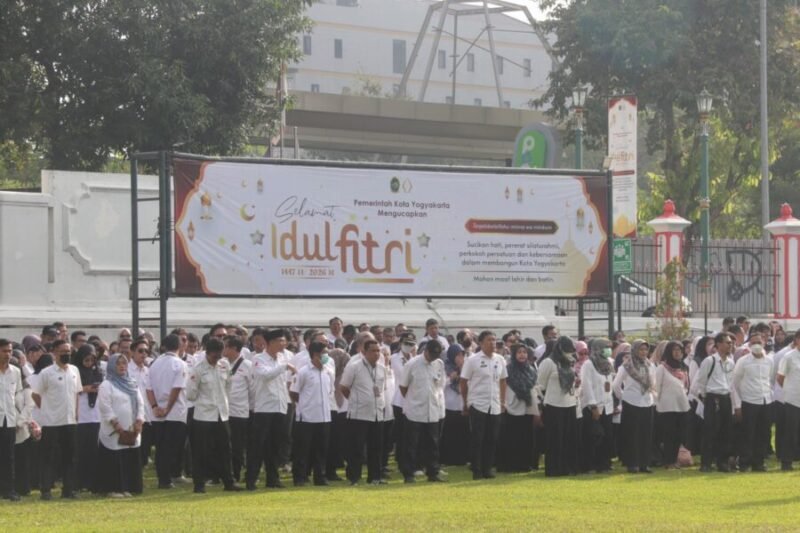 JOGJAOKE.COM, YOGYAKARTA — Wali Kota Hasto Wardoyo menekankan pentingnya sikap saling memaafkan dengan tulus serta membangun semangat gotong royong sebagai bagian dari nilai keimanan. Hal tersebut disampaikan saat memimpin Apel dan Halal Bihalal Pegawai Pemerintah Kota Yogyakarta yang digelar di Balai Kota Yogyakarta, Rabu (25/3).